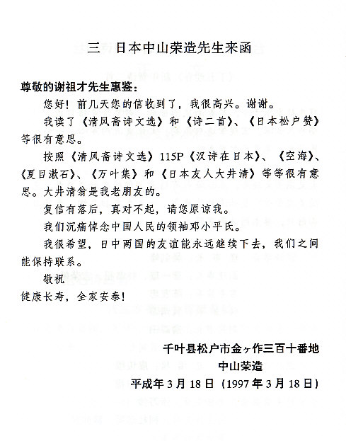 2004年 李克英先生 題日本友人中山栄造先生照