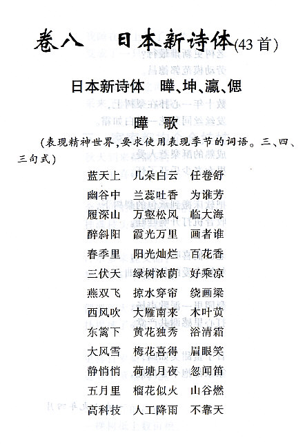 曄歌坤歌偲歌瀛歌三連五七律自由漢詩笠翁対韻羊角対漢歌漢俳填詞詩余元曲散曲楹聯はこの講座に記載があります